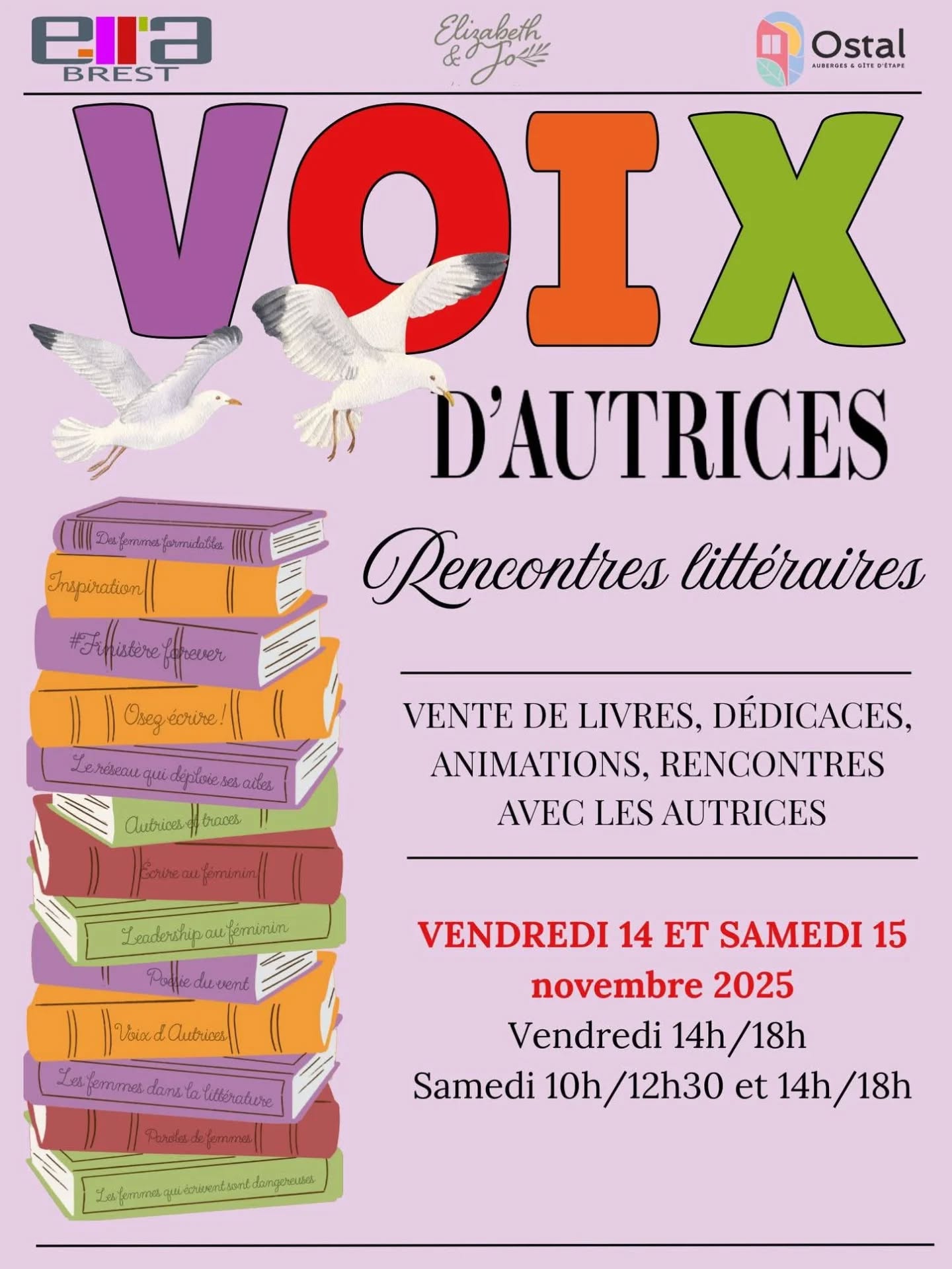 Natalia a le plaisir de vous inviter au salon littéraire Voix d'Autrices qui se déroulera à l'Auberge de Jeunesse de Brest, le vendredi 14 après-midi et le samedi 15 novembre toute la journée.